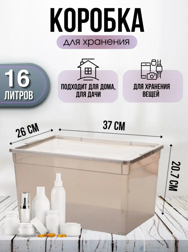 Коробка для хранения тайна 16л предназначена для гардеробной, шкафа, кладовой. Коробки можно компактно ставить друг на друга. Матовый цвет препятствует выцветанию вещей внутри коробок.