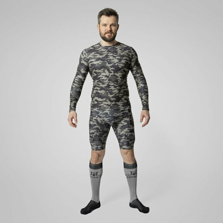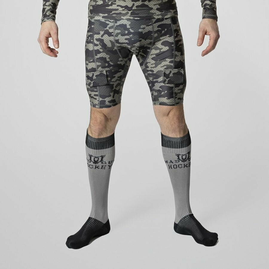 Компрессионные шорты с защитной раковиной MAD GUY Camo-Line. Сделаны из комбинации нейлона для повышенной износостойкости, полиэстера для дополнительной вентиляции и эластана для идеальной посадке по фигуре. Отлично выводит влагу наружу и защищает тело от перегрева во время игры. Плоские швы для непревзойденного комфорта во время носки. Специальная сетка в местах повышенного потоотделения для улучшения вентиляции. Вставки с липучками надежно зафиксируют гамаши. Ударопрочная защитная раковина с мягкими силиконовыми краями гарантирует надежную защиту паховой области.