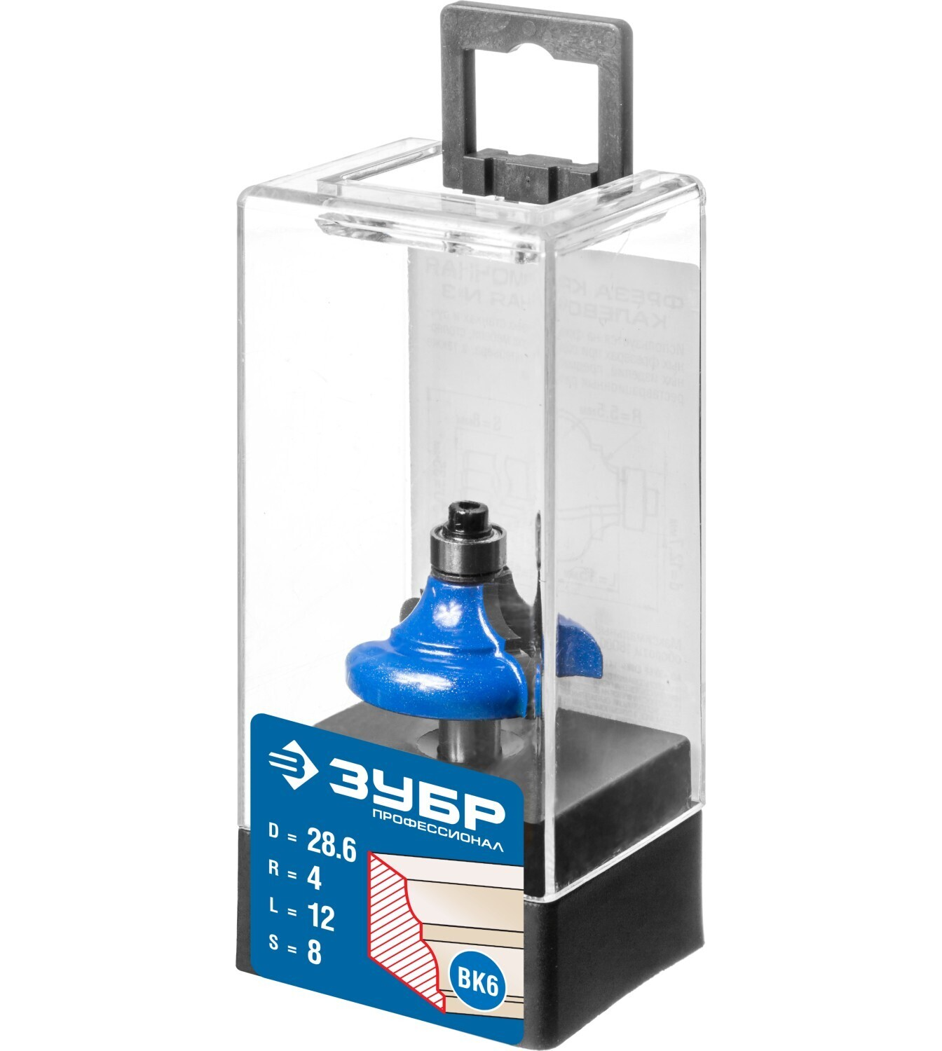 Фреза кромочная калевочная №3, D= 28,6мм, рабочая длина-12мм, радиус-4мм, хв.-8мм, d-9,5мм, ЗУБР Профессионал