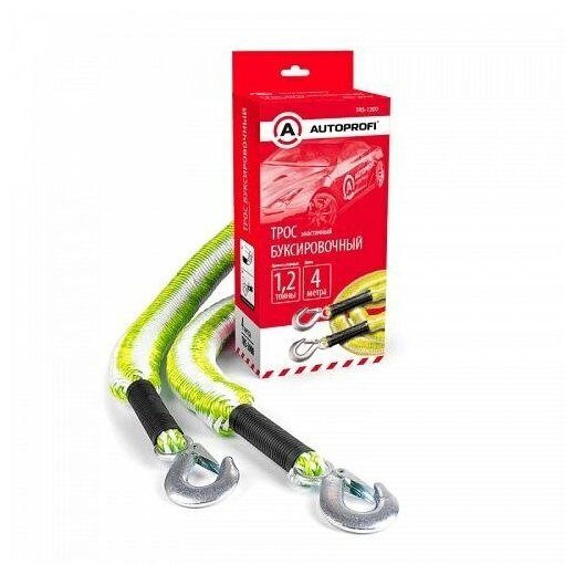 Трос буксировочный "Autoprofi", канат, эластичный, 1,2т., 1,5-4м., 2 крюка.