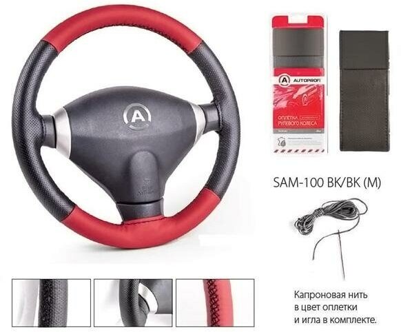 Оплетка для перетяжки руля AUTOPROFI Sam-100 bk/bk (m)