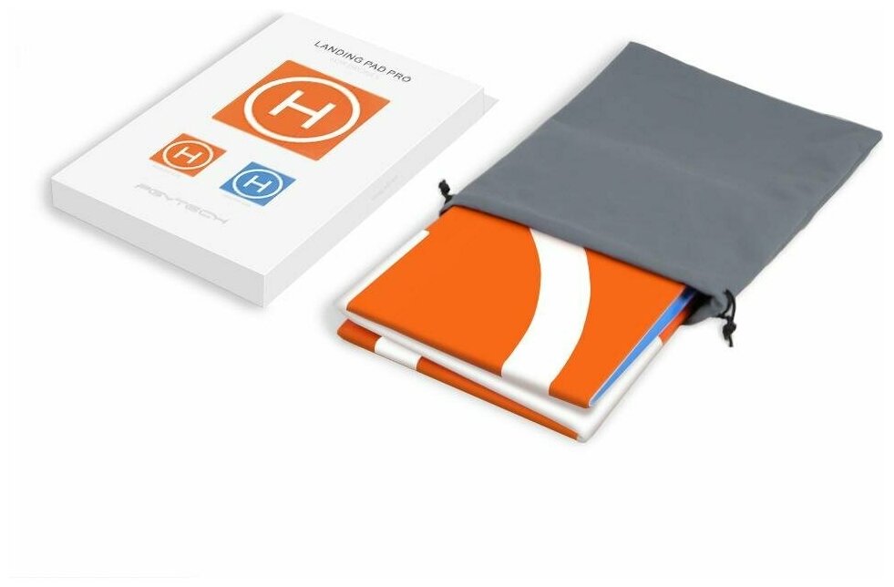 Складная двусторонняя посадочная площадка для квадрокоптера. Площадка изготовлена из водонепроницаемого материала, что подходит для использования на открытом воздухе. Площадка с лёгкостью помещается в тканевый чехол, который идёт в комплекте. В комплект так же входят светоотражающие полоски.