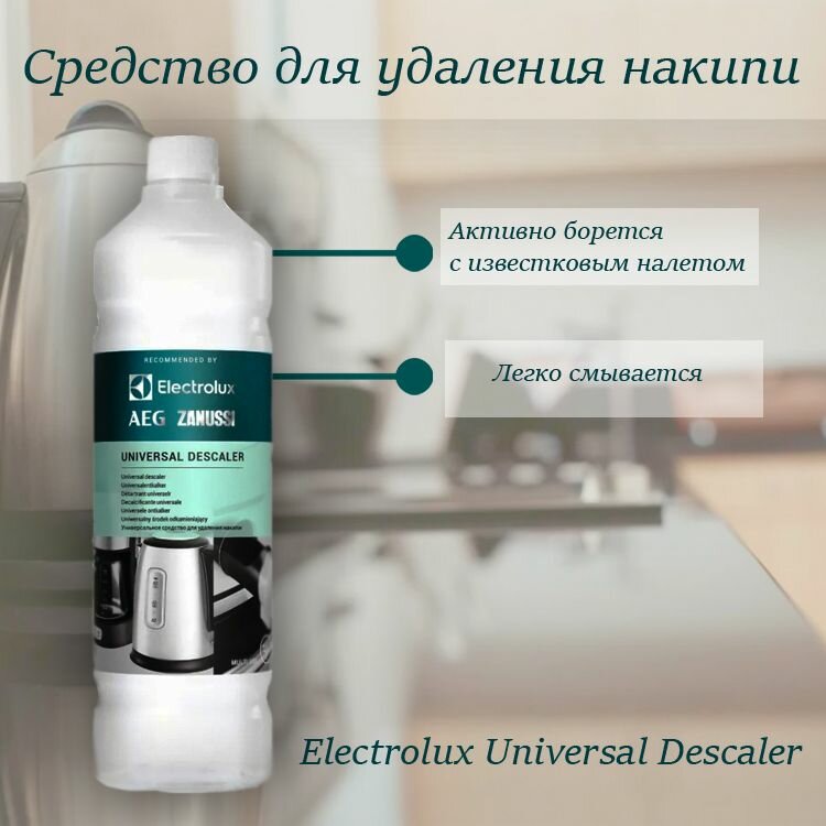Универсальное средство от накипи деликатно, но эффективно очистит от известковых отложений стиральную и посудомоечную машины, чайник, кофеварку, душевую лейку и т.п.