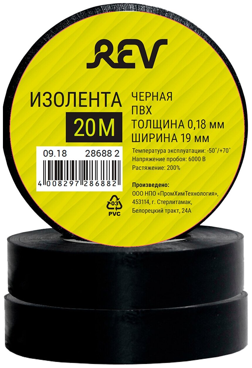 Изолента ПВХ Rev черная 20 м х 19 мм 28688 2