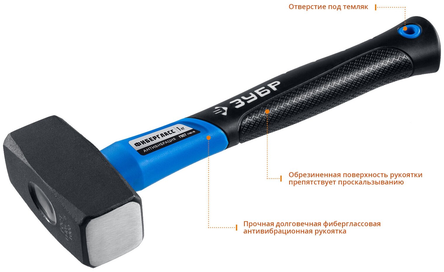 Кувалда ЗУБР Профессионал с фиберглассовой рукояткой 2 кг (2010-20_z02) — это профессиональный инструмент, предназначенный для слесарных работ. Она оснащена особопрочной фиберглассовой рукояткой.Преимущества Особопрочная фиберглассовая рукоятка снижает вибрации и делает работу более комфортной Кованая голова обеспечивает прочность и долговечность инструмента Индукционная закалка головы гарантирует высокую твёрдость и износостойкость Рельефное противоскользящее покрытие рукоятки обеспечивает надёжное удержание инструмента Профессиональный инструмент соответствует требованиям ГОСТ 2310-77