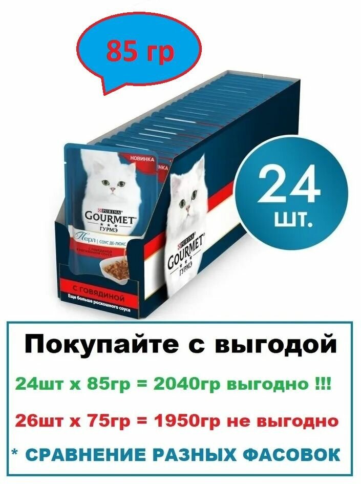 Корм для кошек Gourmet Perle Соус делюкс Говядина пауч 85г (размер: Для всех пород)