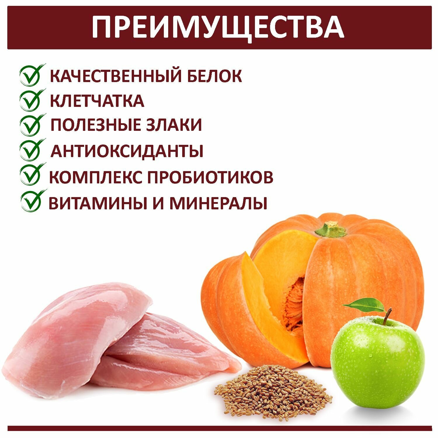 | Состав | Состав: мука из мяса курицы 17%, кукуруза, пшеница, жир куриный, диетические волокна, дрожжи, пробиотический комплекс: Bacillus subtillis, Bacillus licheniformis, тыква сушенная, яблоки сушенные, лизин, DL-метионин, минеральные вещества, антиоксиданты, комплекс витаминов |
