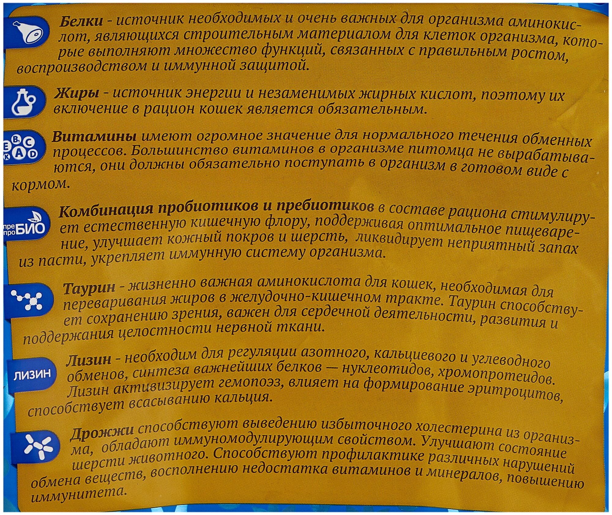 Сухой полнорационный корм премиум-класса для взрослых стерилизованных кошек и кастрированный котов Родные корма. Изготовлен с учетом их физиологических потребностей. В составе только натуральное российское сырье без ГМО, красителей и консервантов.