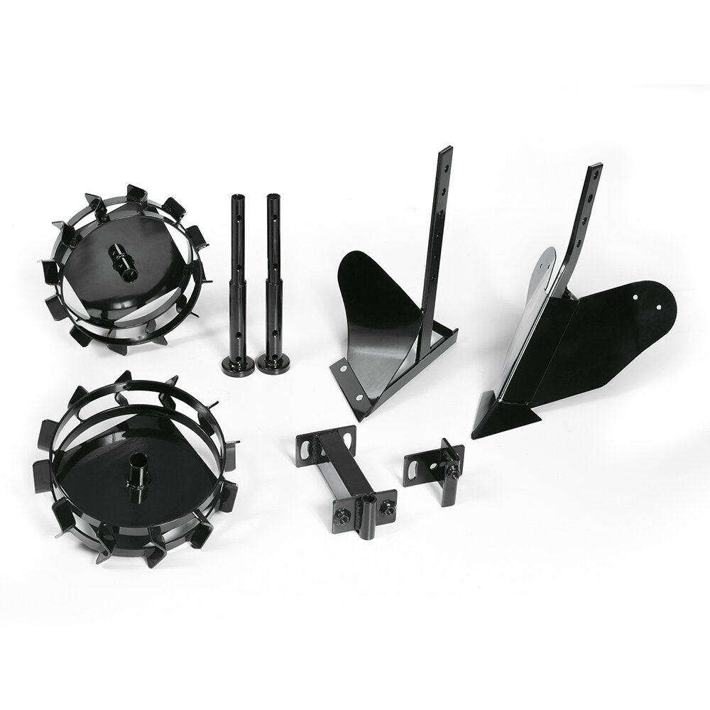 | Состав набора | Колеса-грунтозацепы 2 шт., Плуг окучник 1 шт., Плуг распашник 1 шт., Удлинители для колес 2 шт., Сцепка 1 шт. |