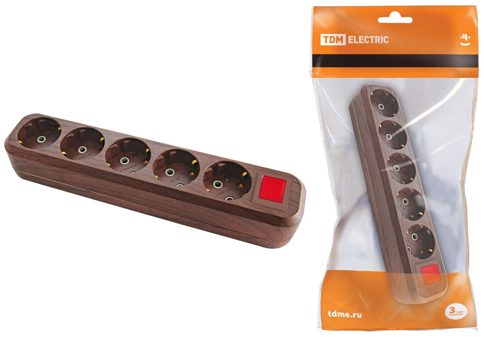- Колодка розеточная 3 гнезда TDM (карболит)