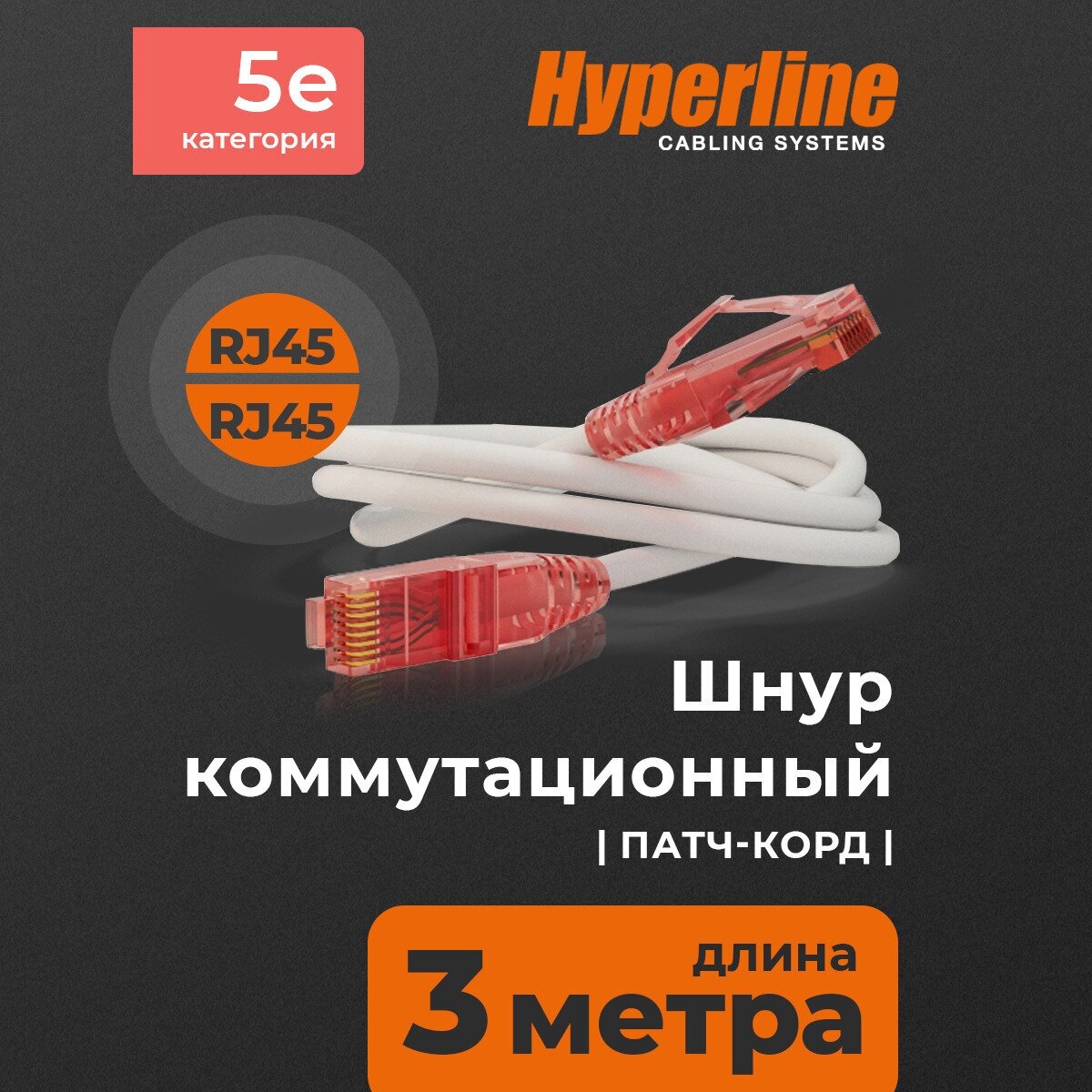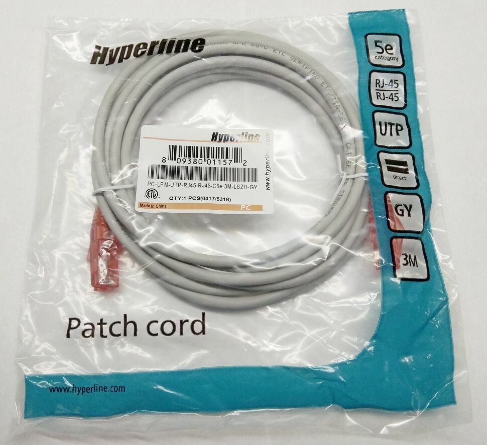 Патч-корд Hyperline PC-LPM-UTP-RJ45-RJ45-C5E-3M-LSZH-GY PC-LPM-UTP-RJ45-RJ45-C5E-3M вилка RJ-45-вилка RJ-45 кат.5E 3м серый LSZH