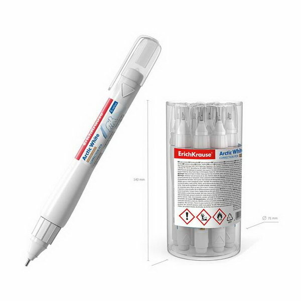 Ручка-корректор с быстросохнущей корректирующей жидкостью для точечных исправлений. Показывает отличный результат на всех типах и цветах чернил. Высококачественный металлический наконечник обеспечивает плавное движение и экономичный расход. Жидкость удобно наносить локально на необходимый фрагмент, создавая непрозрачный слой, незаметный на ксерокопиях. Морозостойкая. На основе растворителя. Перед применением жидкость необходимо взболтать с помощью внутреннего металлического шарика.