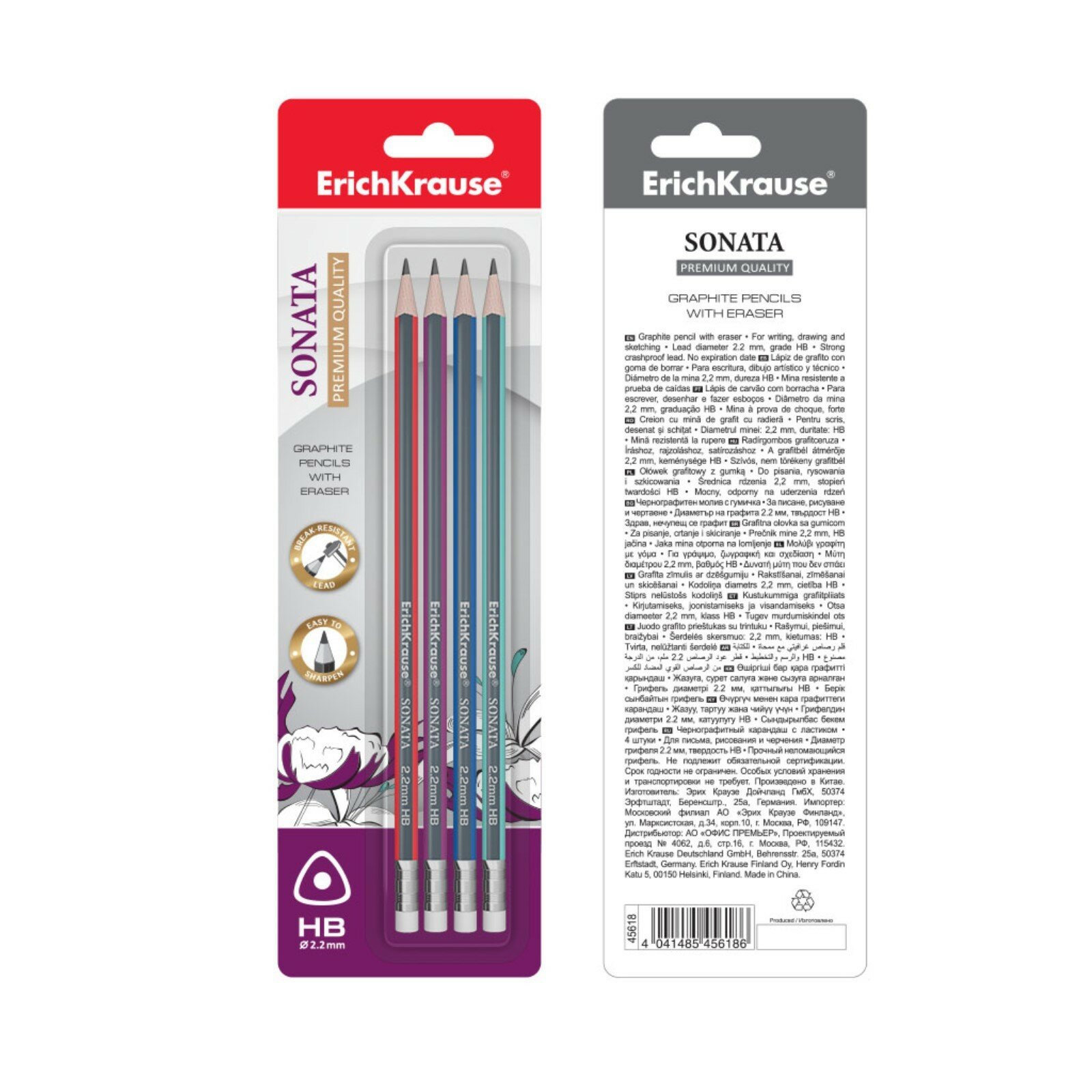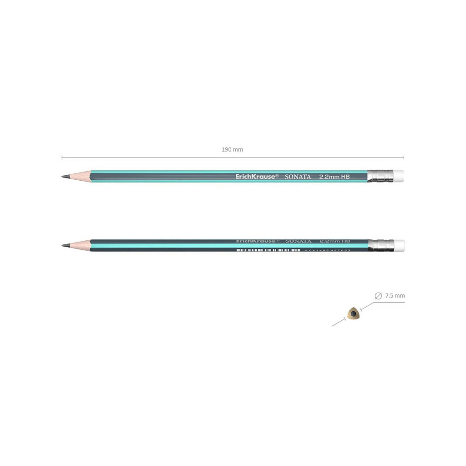 Карандаш HB Erich Krause чернографитный трехгранный с ластиком ErichKrause Sonata (45618)