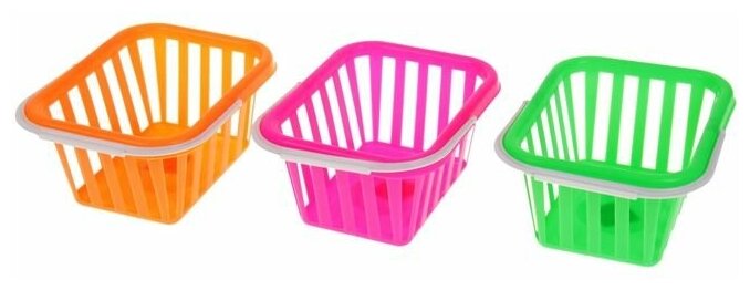 Корзинка пригодится ребенку во время игровых сюжетов, к примеру, будет можно сложить в нее игрушечные фрукты и овощи или одежку для любимой куклы, а потом легко донести поклажу до нужного места. Изделие имеет яркий цвет, а также большую и широкую ручку, за которую будет удобно держаться. Кроме того, в корзинке можно будет хранить игрушки и не опасаться, что они потеряются.