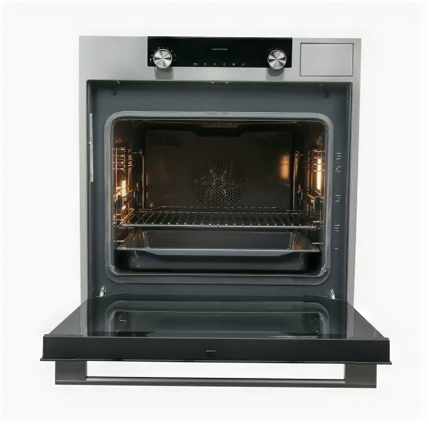 Встроенный вентилятор охлаждает дверцу, предотвращая случайные ожоги и и гарантирует безопасную эксплуатацию прибора. Дверца дополнительно оснащена двумя слоями термостойкого стекла, не пропускающего горячий воздух.