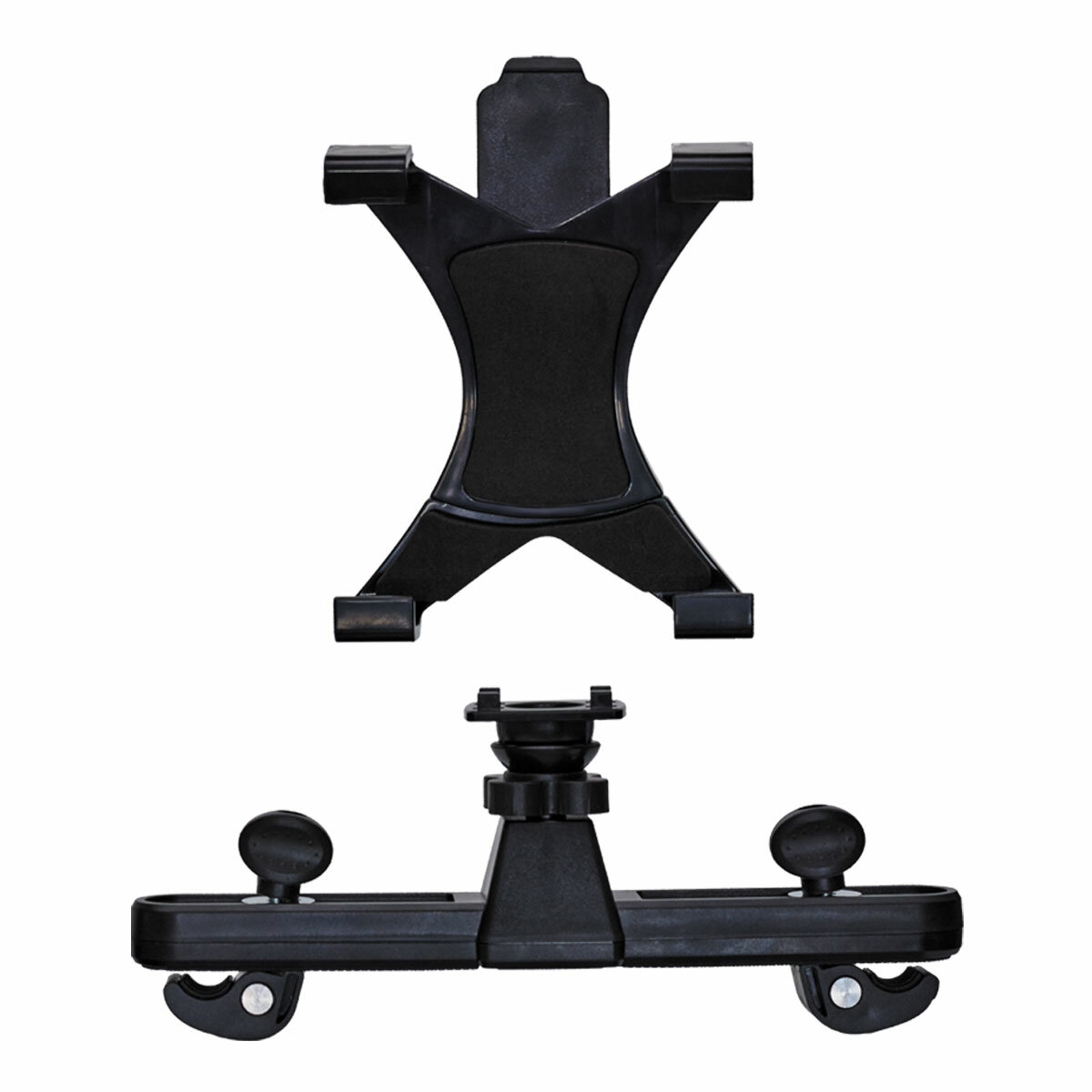 Автомобильный держатель планшета для установки на подголовник переднего сиденья. Высота захвата 115–205 мм.
