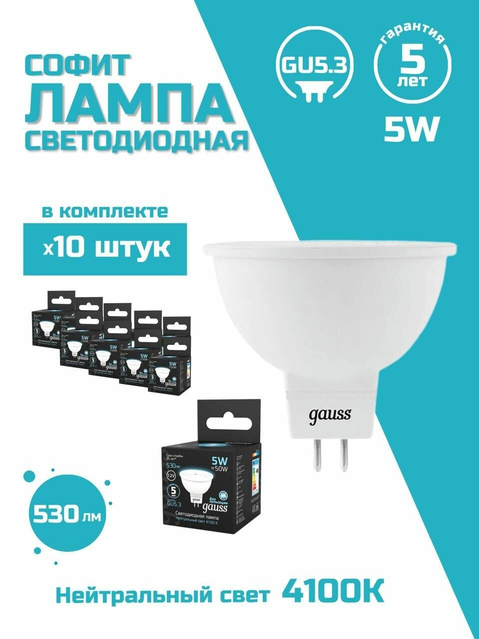 Энергоэффективность. Минимальный объем потребления электроэнергии при активном использовании. Данная лампа Gauss заменяет 50-ваттный аналог, потребляя всего 5 ватт электроэнергии. Экономичнее лампы накаливания в 10 раз. Класс энергоэффективности А+.