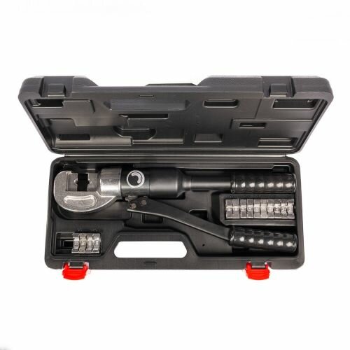 | Комплект поставки | Ручной гидравлический пресс, набор из 8 сменных матриц, ремкомплект, кейс |