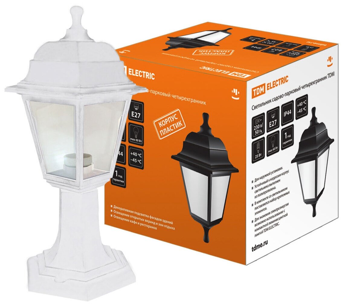 Назначение:Предназначены для декоративного уличного освещения.Преимущества:Основным преимуществом данных светильников является цена, которая гораздо ниже, чем на аналогичные светильники с корпусом из алюминиевого сплава.Широкий ассортимент светильников.Настенный светильник (НБУ) может устанавливаться вверх и вниз плафоном в зависимости от того, как расположить держатель светильника и заглушку.Каждый светильник упакован в индивидуальную коробку, выполненную в фирменном стиле. На коробку нанесена вся необходимая информация.Светильники не подвержены коррозии, степень защиты IP44.Возможно использование ламп накаливания (до 60 Вт), компактных люминесцентных и светодиодных ламп с цоколем Е27.Конструкция:Различаются по способу крепления: настенный (НБУ), подвесной (НСУ) и на стойке (НТУ); по форме – четырехгранник и шестигранник; по цвету корпуса – черный, белый, под бронзу и под медь.Материалы:Корпус:ПП (полипропилен)Рассеиватель:СтеклоПатрон:КерамикаУпаковка:Коробка из картона