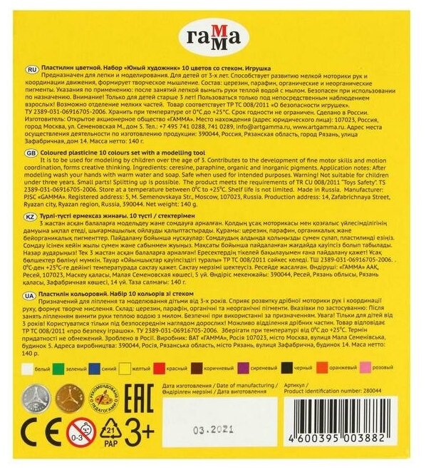 Набор пластилина съедобный Гамма Юный художник цвет: желтый юный художник 10 цветов
