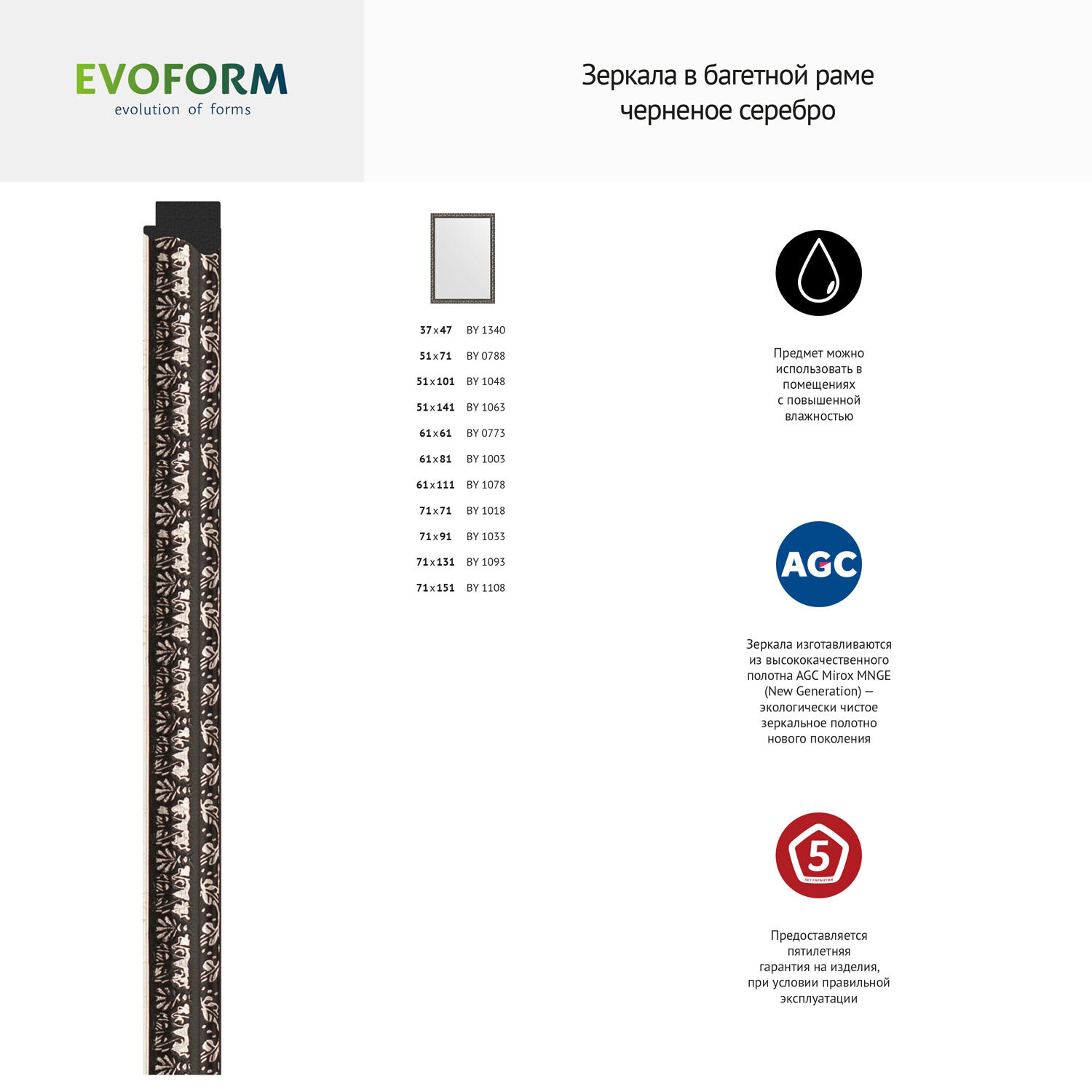 Зеркало Evoform Definite 47х37 в багетной раме, со шлифованной кромкой - изготавливается из высококачественного полотна AGC Mirox MNGE (New Generation). Экологически чистое зеркальное полотно нового поколения. Можно использовать в помещениях с повышенной влажностью.