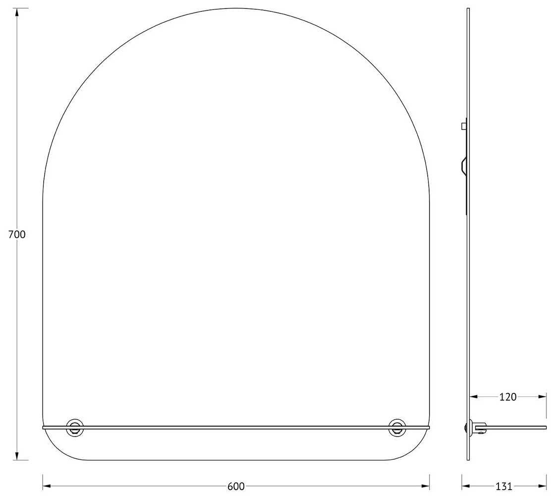 Зеркало Evoform Optima 70х60 с полочкой со шлифованной кромкой - изготавливается из высококачественного полотна AGC Mirox MNGE (New Generation). Экологически чистое зеркальное полотно нового поколения. Можно использовать в помещениях с повышенной влажностью. Форма: арка.Комплект поставки: