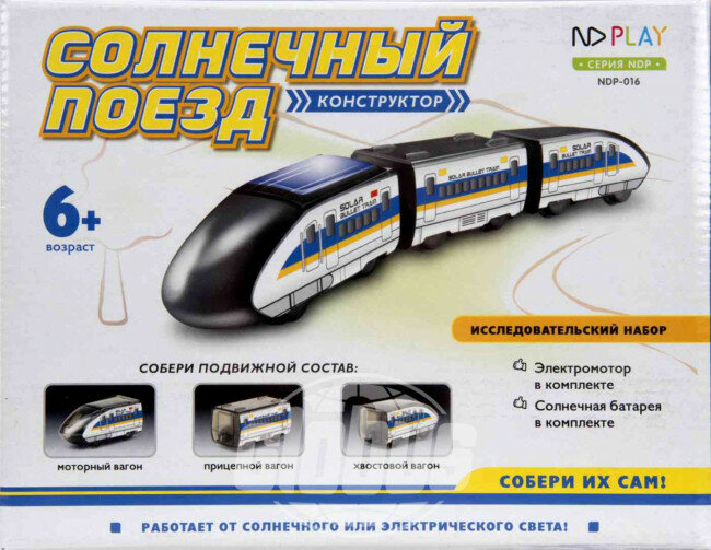 Конструктор Солнечный поезд позволит детям собственными руками сконструировать миниатюрную модель скоростного поезда. Кажется, что для сбора такой сложной техники потребуются какие-то навыки. Но на самом деле все элементы набора изготовлены таким образом, чтобы ребенок без лишних усилий смог собрать конструктор. Это прекрасная возможность проявить логику, фантазию и внимательность к деталям! Кроме того, процесс способствует развитию мелкой моторики.Все детали легко соединяются друг с другом, не требуя специального инструмента. Родителям остается только смотреть за тем, как юный машинист управляется с поездом.Солнечная энергия — современный экологически чистый источник питания, который с каждым днем все больше проникает в нашу жизнь. Производители решили, что игрушки на энергии солнца помогут детям узнать новые факт из мира физики через увлекательный игровой процесс, поэтому такие игрушки становятся все популярнее и популярнее. Конструктор Солнечный поезд — ни чуть не уступает технике на привычном питании. Даже наоборот! Безопасный источник энергии и материалы делают игрушку максимально подходящей для детей и животных в доме. Таким образом, ребенок сможет понять важность заботы об окружающей среде в век технологий