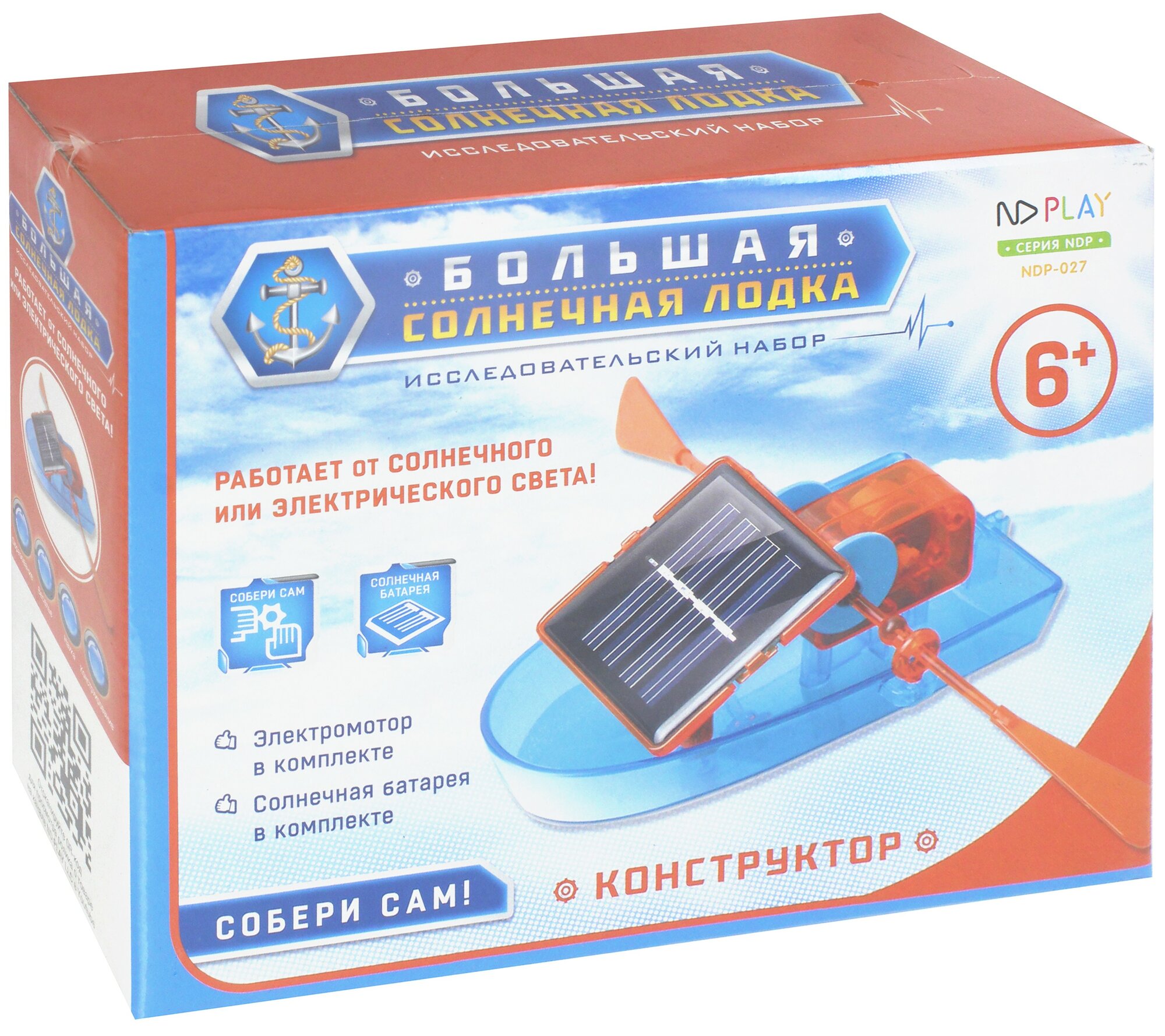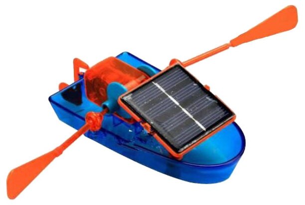 Конструктор лодка — уникальный набор, работающий за счёт солнечной энергии. Батарейки и другие внешние элементы питания вам не потребуются. Всё, что потребуется вашему ребенку для игры — солнечная погода, если он играет на улице или хорошее освещение, если юный конструктор остался дома. Стоит лучу света попасть на специальный принимающий элемент, как игрушка сразу же приводится в движение. На примере модели лодки родители могут наглядно рассказать о солнечной энергии и как её можно использовать. Робот-конструктор настолько увлекателен, что не оставит к себе равнодушным даже самого незаинтересованного в науке ребенка. С помощью конструктора лодки дети знакомятся с основными физическими и механическими законами. Подобные игрушки стимулируют у них тягу к знаниям и новым открытиям. Стоит отметить, что процесс сборки не менее увлекателен, чем игра с собранным конструктором. В наборе имеется 10 деталей: один корпус лодки, солнечный модуль, коробка передач, два вала лопастей, руль, два кольца для лопастей, две лопасти. Красочная инструкция для сборки игрушки прилагается.