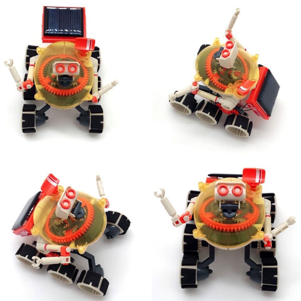 Оригинальная игрушка-конструктор позволяет самому собрать из комплекта деталей робота, работающего от солнечной энергии. Такой конструктор стимулирует у ребенка тягу к познаниям и изучению физики и механики, он позволит Вам наглядно продемонстрировать ребенку принцип использования солнечной энергии и станет необычным сувениром как взрослому, так и ребенку.