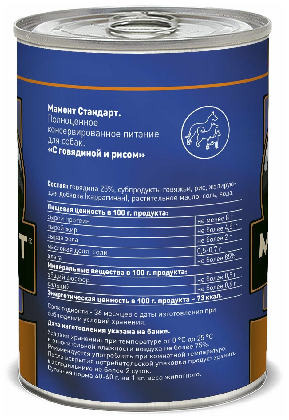 Влажный корм для собак - Мамонт Стандарт с говядиной и рисом. Нежная консистенция в виде паштета значительно увеличивает вкусовую привлекательность. В качестве ингредиентов используется только свежая охлажденная говядина. 100% натуральное влажное питание, изготовленное из мяса высшей категории.