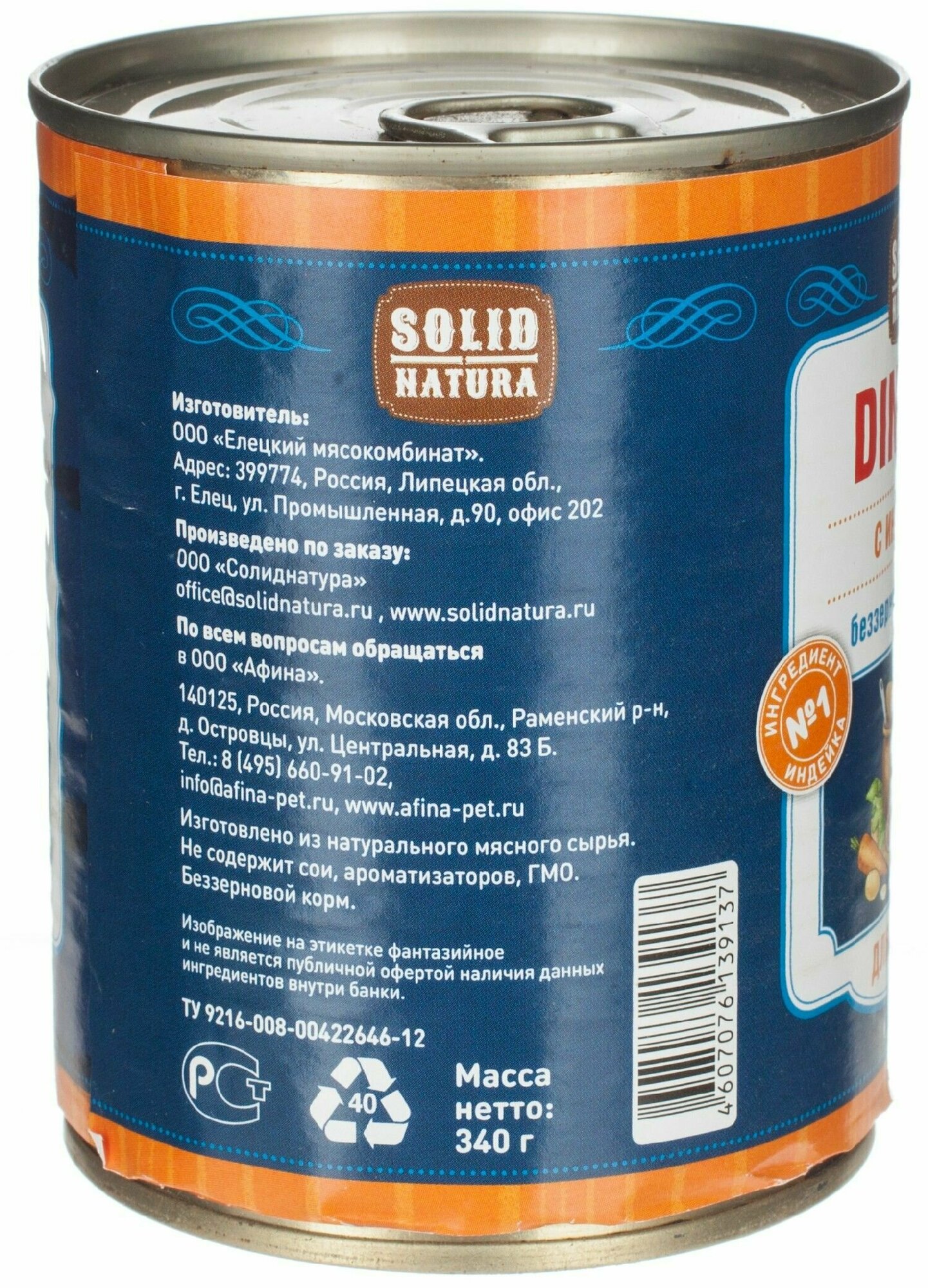 Влажный корм Solid Natura Dinner для взрослых собак 340 г (8652)