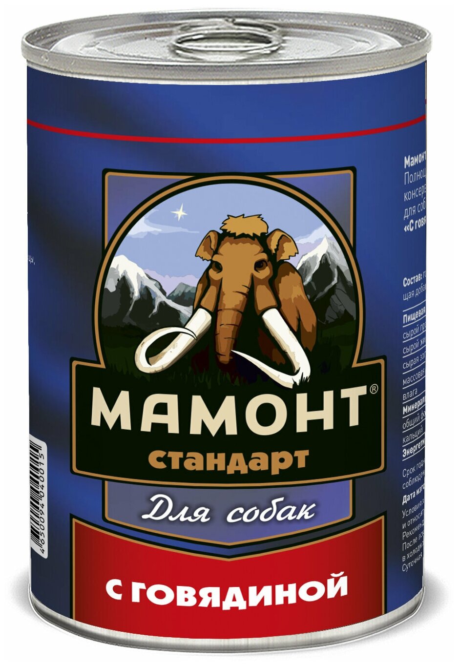Влажный корм для собак - Мамонт Стандарт с говядиной. Нежная консистенция в виде фарша значительно увеличивает вкусовую привлекательность. В качестве ингредиентов используется только свежая охлажденная говядина. 100% натуральное влажное питание, изготовленное из мяса высшей категории.