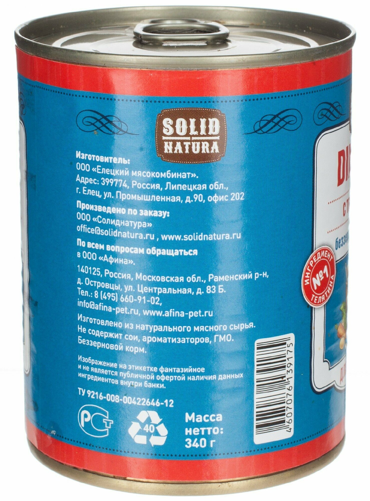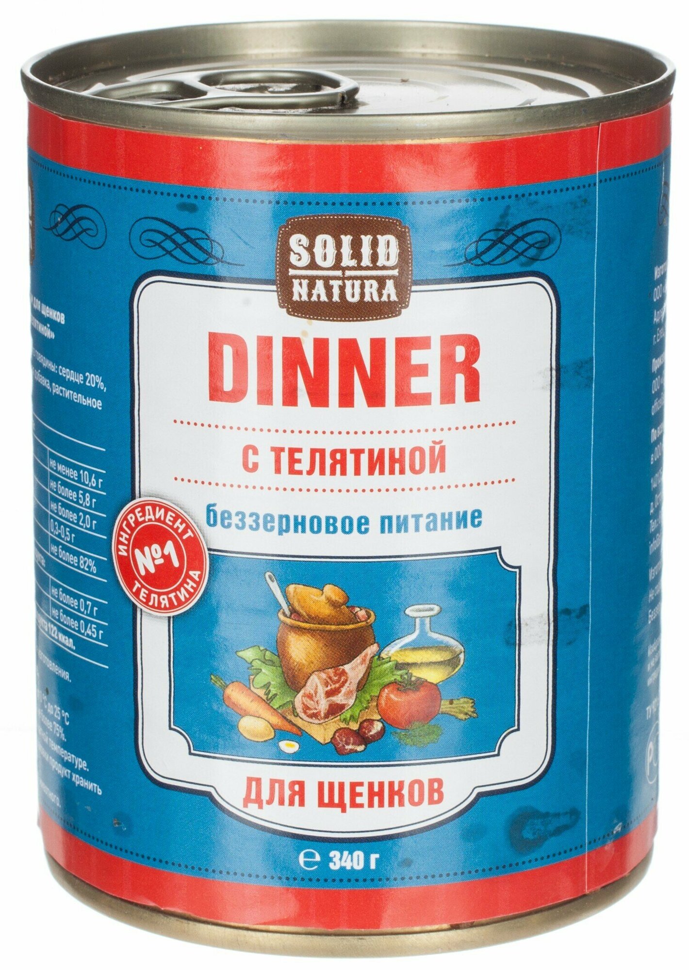 Solid Natura Dinner с телятиной - консервированное влажное питание класса премиум для щенков. Нежная консистенция в виде фарша, отличная поедаемость, в составе отсутствуют зерновые культуры.