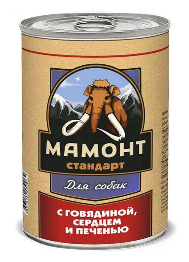 Влажный корм для собак - Мамонт Стандарт с говядиной, сердцем и печенью. Нежная консистенция в виде фарша значительно увеличивает вкусовую привлекательность. В качестве ингредиентов используется только свежие охлажденные говядина, сердце и печень. 100% натуральное влажное питание, изготовленное из мяса высшей категории.