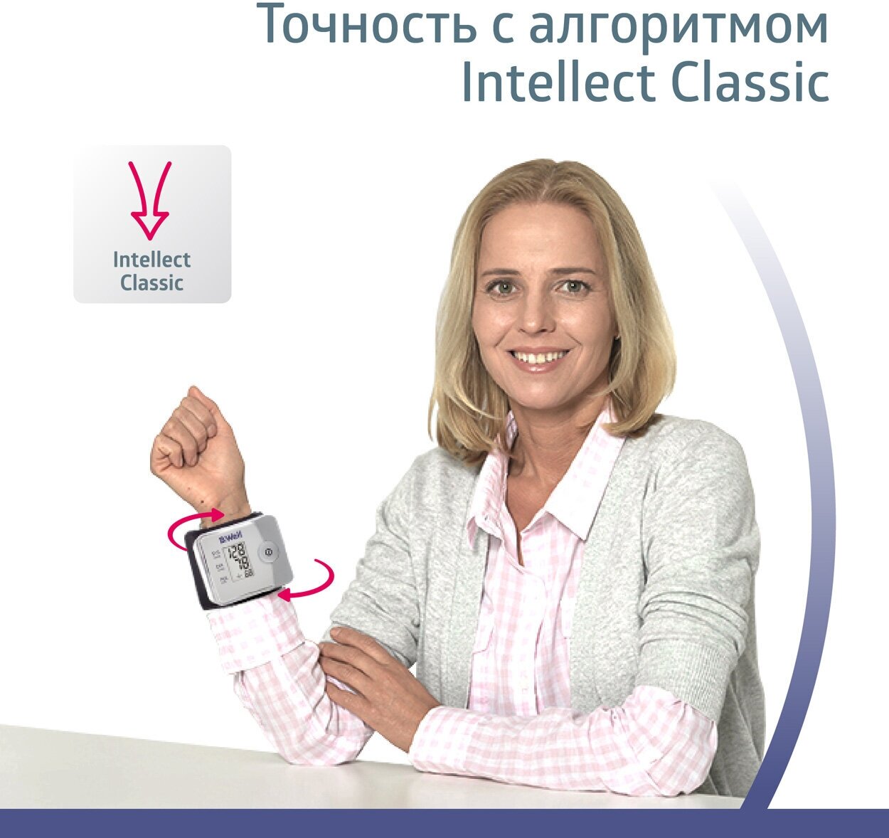 Технология B.Well выявляет самые первые признаки аритмии, позволяя вовремя обратиться к специалисту и предупредить зарождающиеся заболевания сердца. Технология Intellect Classic обеспечивает комфортное измерение и точный результат.