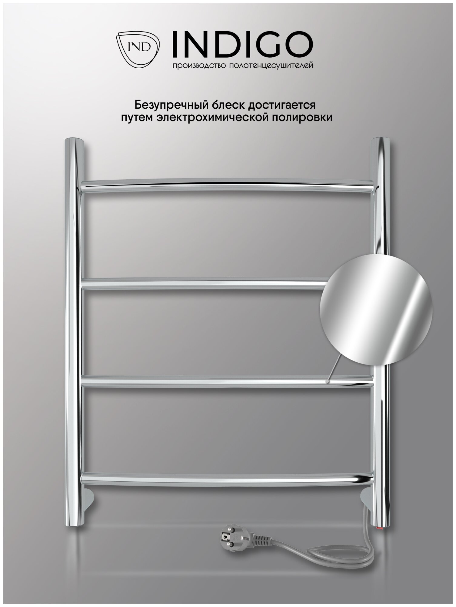 Полотенцесушитель изготовлен из кислотостойкой пищевой нержавеющей стали AISI 304. Электрический полотенцесушитель INDIGO идеально подойдет для сушки полотенец, нижнего белья и другой одежды. Одно из главных его преимуществ - независимость от сезона отопления. Вы сможете в любое время повесить одежду на просушку. Вилка снабжена выключателем.