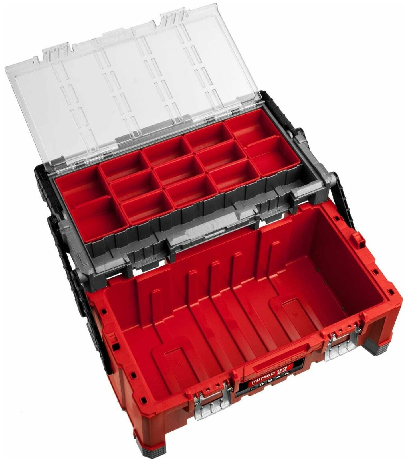 Ящик-органайзер Зубр Профессионал Комбо-22 38138-22 z01 применяется для хранения инструментов и принадлежностей. Металлические замки для надежного запирания ящика во время переноски. Открытие крышки без ее переворачивания. Широкая металлическая ручка для регулировки центра тяжести ящика при переноске. Съемные лотки 11 шт.