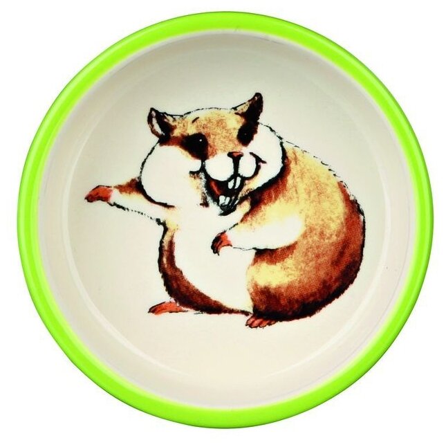 Круглая миска из глазурованной керамики для хомячков и похожих по размерам грызунов. Используется для корма, овощей и фруктов. Можно мыть в посудомоечной машине. Объем: 80 мл.Диаметр: 8 см.