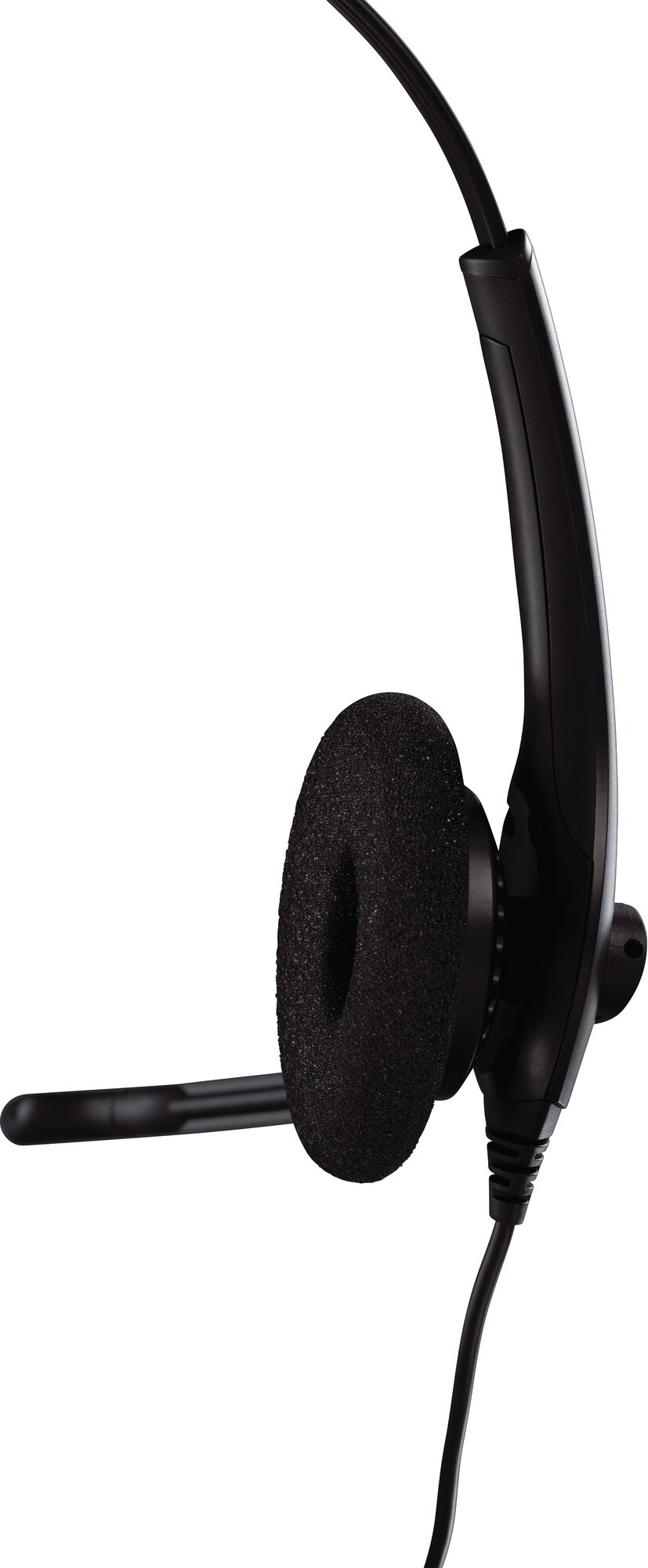 Jabra BIZ 1500 Duo, QD, NC, EMEA- одна из ряда профессиональных гарнитур начального уровня, предназначенных для использования во время разговоров по телефону в течение всего дня. Данная модель является проводным вариантом, микрофон имеет функцию внешнего шумоподавления. Одной из главных особенностей является гибкость микрофонной штанги и оголовья, а также широкополосный звук из динамиков. Технические характеристики данной гарнитуры раскрываются, начиная со специально разработанной технологии PEAKSTOP, которая защищает барабанные перепонки человека, предотвращая любой ущерб слуху. Во время работы система моментально снижает и приглушает нежелательные звуки, опасную силу громкости, прежде чем он достигает органов слуха. Такой уровень сохраняется на протяжении всего опасного периода. Говоря о динамике, следует напомнить о его функциях. Здесь широкополосный эффект воспроизводимости звука отлично сочетается с HD-Voice функцией. Вместе они образуют высокую четкость звука для идеального общения Удобное расположение микрофона позволяет не только поднимать его или опускать, но и поворачивать в любое положение на 270 градусов вокруг своей оси. Инженеры Jabra предусмотрели в микрофоне систему изоляции лишнего звука, что сокращает фоновый шум до 60% или убирает полностью. За комфортное использование гарнитуры также отвечают амбушюры сделанные из поролона, позволяющие использовать устройство длительное время. Данная модель имеет модификацию с разъемом для подключения QD-типа. В заключение отметим наличие в данной модели прочных кабелей, которые усилены кевларовым волокном. В целом устройство является отличным и доступным вариантом гарнитуры.