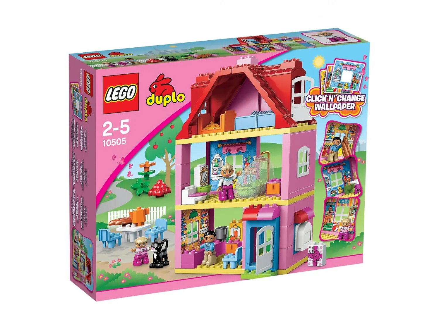 LEGO 10505 Кукольный домик DUPLO – оригинальная игрушка для девочек возрастом от двух лет. Благодаря использованию экологичного материала, он безопасен для детей. Все детали легко закрепляются между собой. Особенности: Дом выполнен в ярких цветах, он имеет три этажа, один из которых находится в мансарде. Здание дополнено подвижными дверьми, окнами. В комплект входят «сменные обои», фигурки двух девочек, мальчика и кота.