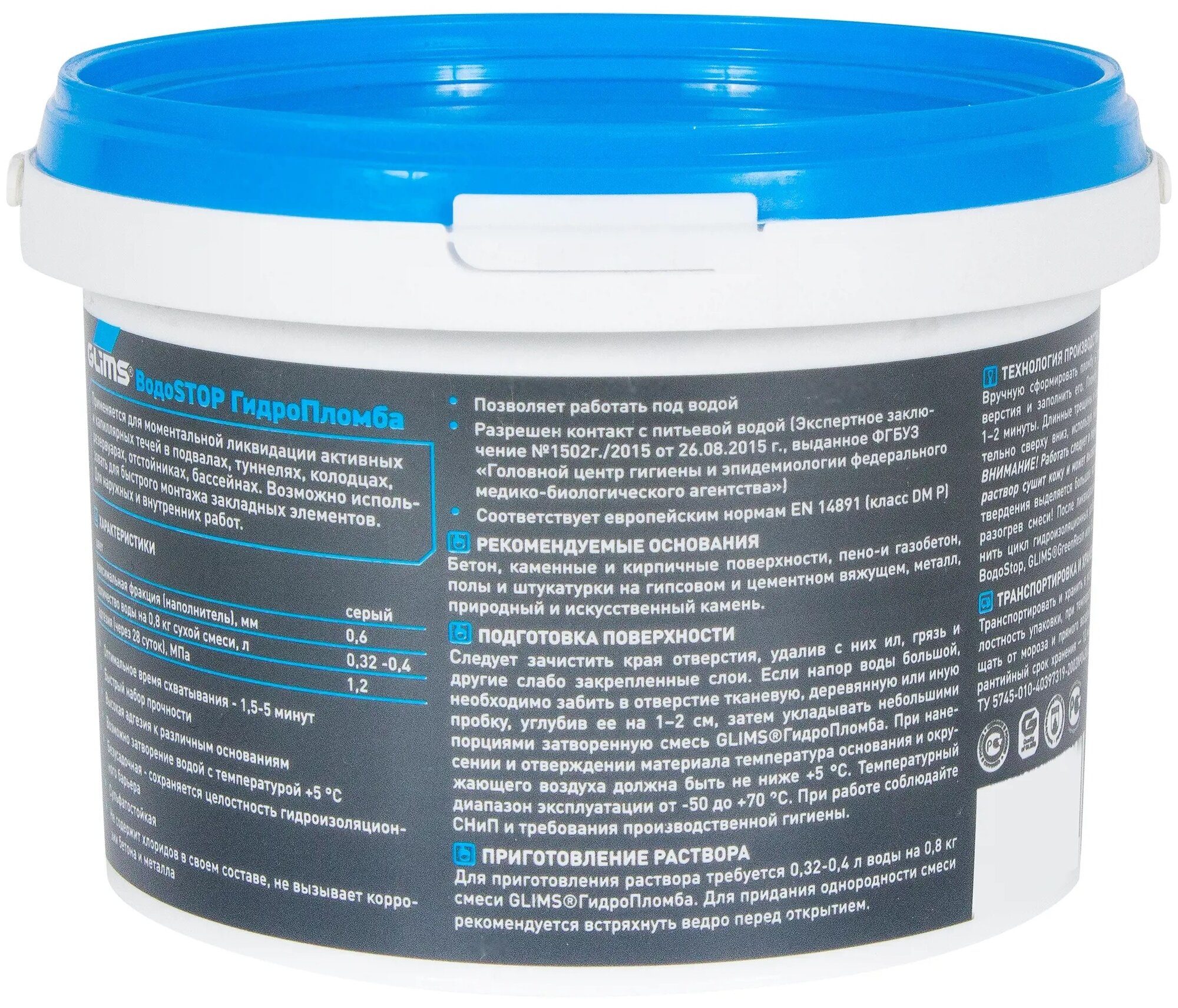 Смесь гидропломба GLIMS ВодоSTOP 08 кг О00006929