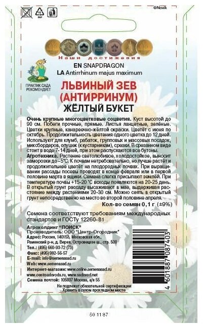 На сегодняшний день товар «Львиный Зев Желтый букет 01 гр ПОИСК» можно купить с кешбеком в 1 магазине: Яндекс.Маркет
