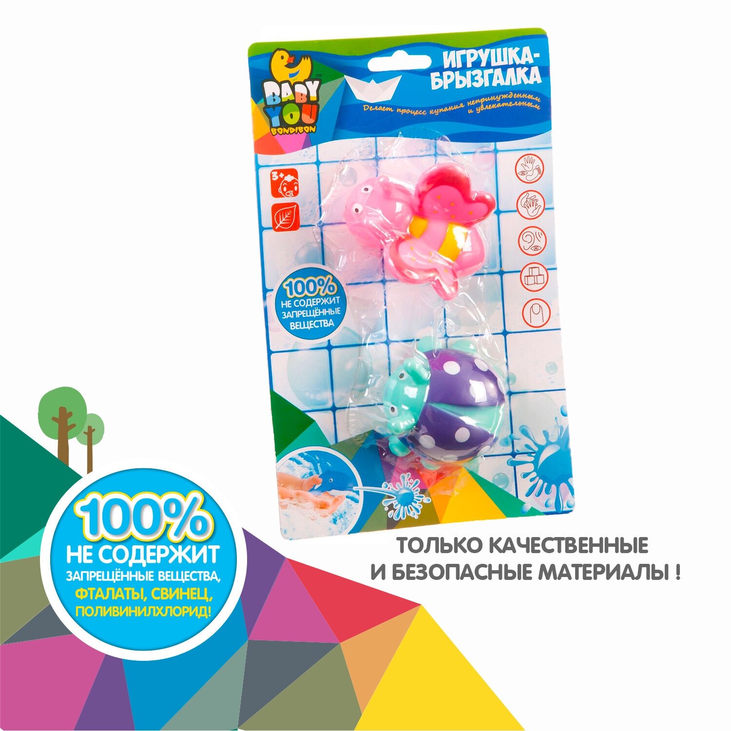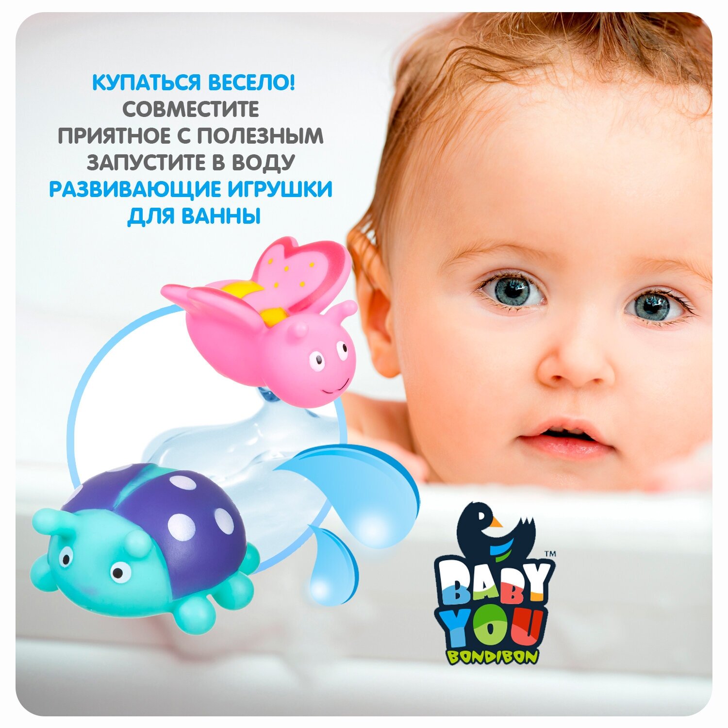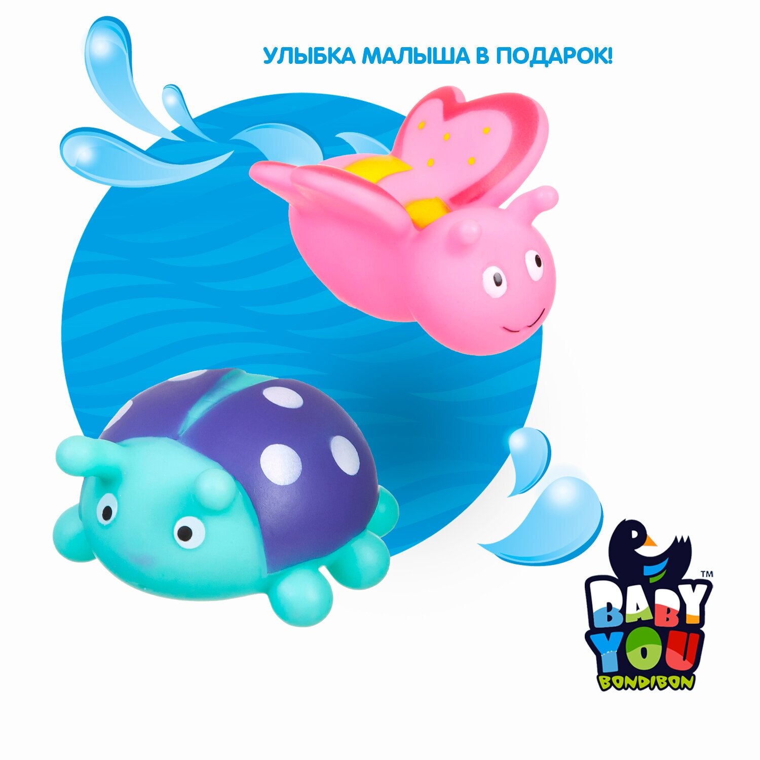 Игрушки-брызгалки для ванной способны превратить ежедневное купание в увлекательное и обучающее занятие. В качестве самой первой игрушки отлично подойдут безопасные и яркие наборы ТМ Baby You Bondibon! Они сделают процесс купания непринужденным и увлекательным. Малышу будет весьма интересно наблюдать, как игрушки плавают и не тонут. Кроха обязательно попытается поймать и схватить их. Такие простые действия для взрослых и такие интересные и познавательные для маленького ребенка. С помощью этих манипуляций малыш разовьет мелкую моторику, познавательные способности и общие двигательные навыки.