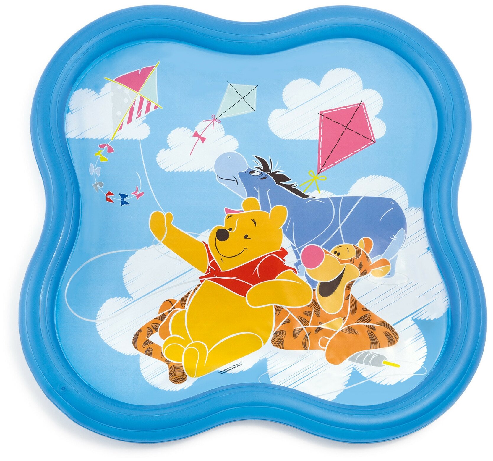 Данный бассейн переназначен для малышей возрастом от 1 до 3 лет. Он выполнен в форме голубого облачка с красочным рисунком на дне с любимыми героями диснеевского мультфильма про Винни-Пуха и его друзей. В бортиках бассейна имеются специальные маленькие отверстия, которые позволяет воде выстреливать из них фонтаном, делая для ребенка своеобразное водное представление. Размер бассейна равен 140 х 140 х 10 см, он является достаточным, а высота бортиков 9 см вполне безопасна для маленького ребенка. Бассейн рассчитан на 115 л воды при его наполнении в 80%.