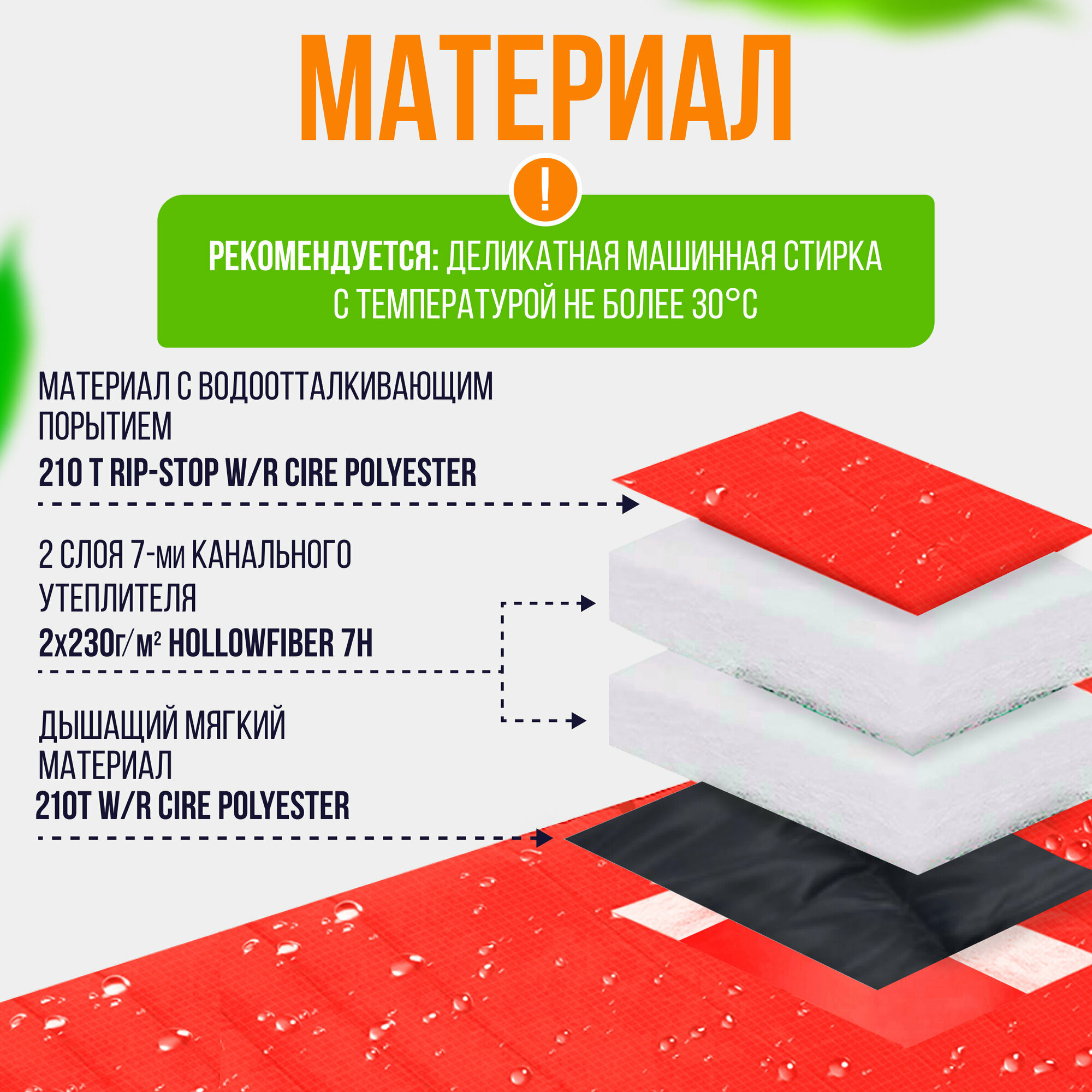| Материал верха | Полиэстер 210T RipStop W/R Cire |