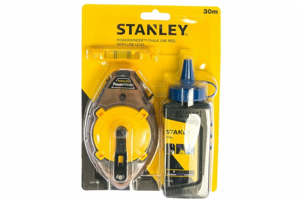 Набор из 3 предметов: шнуровка 30 метров, голубой краситель 115 грамм, уровень Stanley применяется для проведения разметочных работ. Корпус изготовлен из АБС-пластика с рукояткой из нержавеющей стали. Для размещения мела конструкция оснащена специальным отверстием с выдвижной крышкой, которое вмещает 45 грамм мела. Оснащен кнопкой вытягивания шнура без помощи рукояти. Уровень позволяет выявлять отклонения плоскости во время разметки. Для проведения точных измерительных работ в комплект входит уровень, он позволяет определить отклонения плоскости.