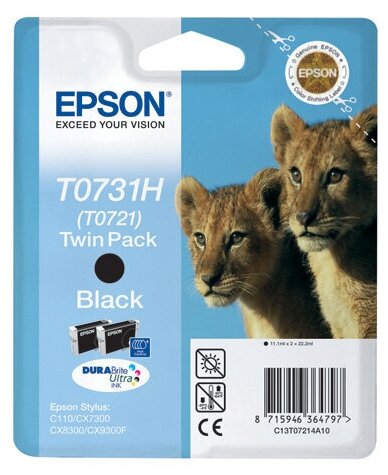 Набор картриджей Epson T0731H состоит из 2 контейнеров с черным красителем для заправки струйной печатной техники. Оригинальные конструкции разработаны для функционирования с офисными принтерами модельного ряда Epson Stylus. Картридж рассчитан для перевода в печатный формат документов с информацией текстового или графического характера. Оригинальный чернильный краситель легко высыхает на поверхности бумаги, долго сохраняя первоначальный насыщенный цвет.