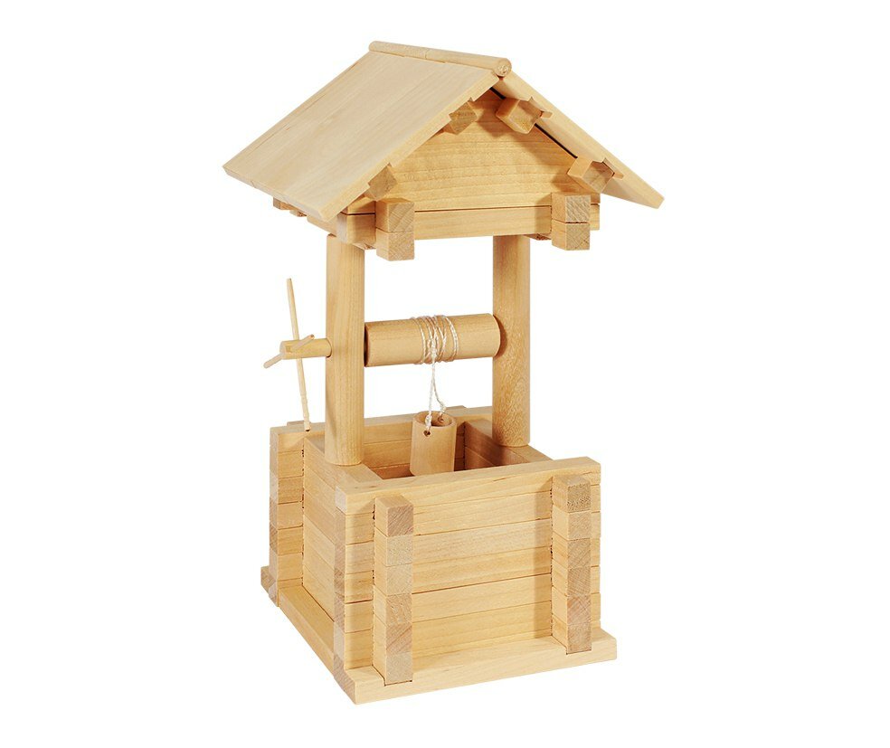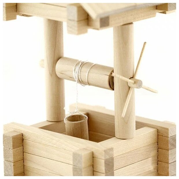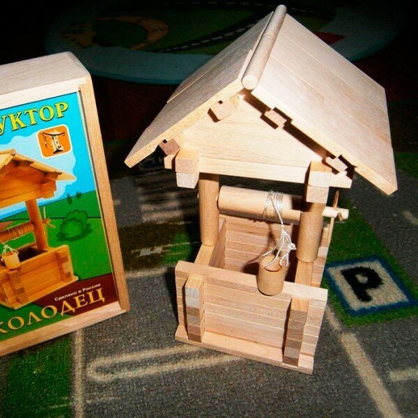 Размер готовой модели: 210х100х100 мм. Конструктор Колодец это кинематический конструктор с движущимися элементами. В основе конструктора лежат традиции русского зодчества, используется один из видов строительства русской избы, так называемый «сруб с остатком». Уникальной особенностью конструктора являются большие игровые возможности, позволяющие увеличивать площадь застройки и этажность сооружения. Очень важно, чтобы ребенок в любом деле имел успех. Поэтому, особое внимание уделено инструкции, в ней тщательнейшим образом разобраны правила игры и приведены пошаговые планы строительства конструктора. Игра с деревянным конструктором развивает пространственное мышление, мелкую моторику рук, аккуратность, усидчивость и творческие навыки.