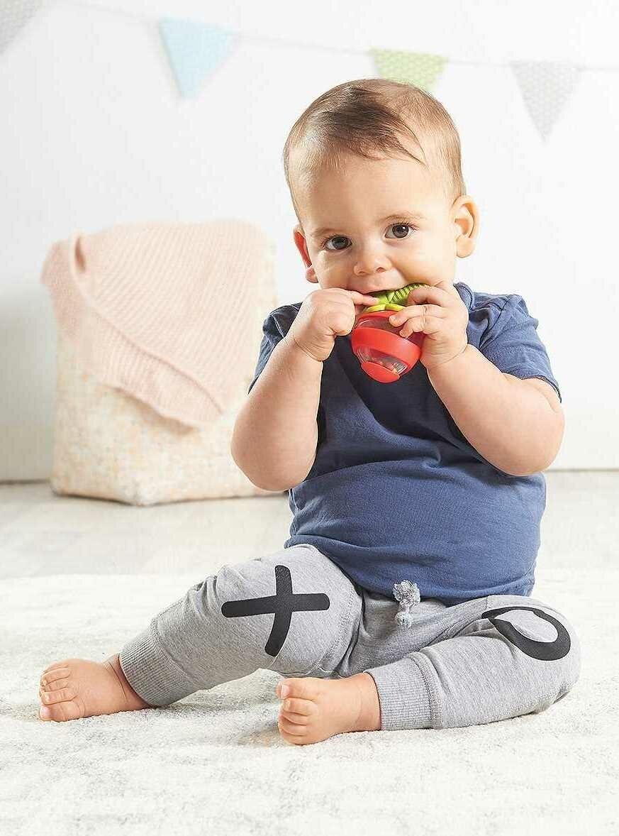 Забавные морковка и клубничка - это и погремушка, и прорезыватель, и развивающая игрушка одновременно. Корпус выполнен из прозрачного пластика, поверх которого по спирали располагается второй слой ярко пластика более мягкой фактуры, наиболее комфортной для режущихся зубок малыша. Внутри располагается спиралеобразный шнек по которому перемещаются разноцветные бусинки, побуждающие малыша разглядывать их, следить за их перемещением, и, таким образом, греметь ими.