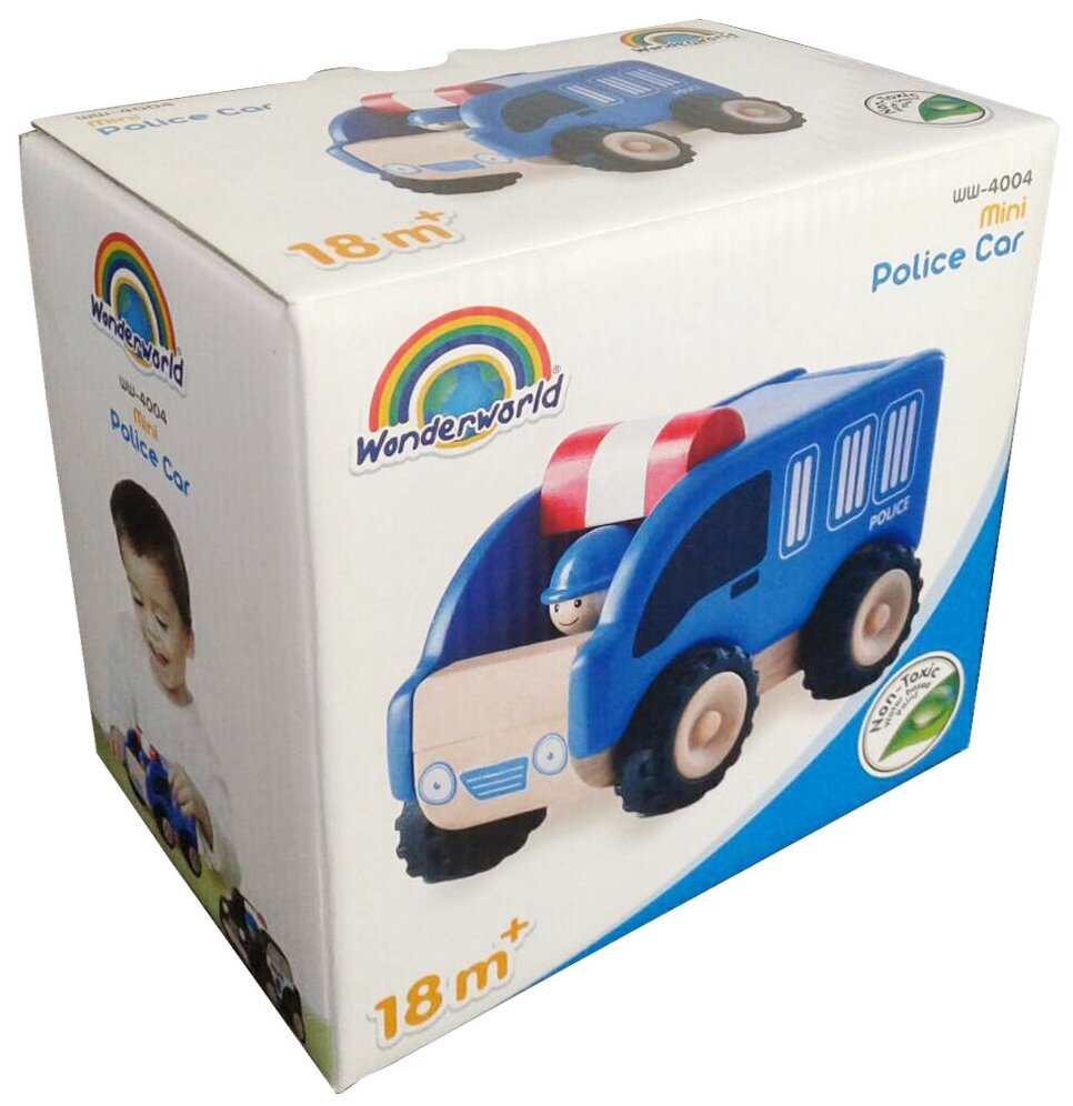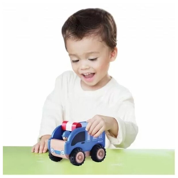 Пока ребенок еще маленький, покупаю машинки, которые не имеют мелких деталей, что могут привести к травмам, такие как полицейский фургон от вандерворлд сити. Такая машинка подходит деткам от полутора лет благодаря материалам использованным при ее изготовлении (дерево) благодаря легкому весу и плавному ходу, машинка легко слушается детских ручек, а еще она не больших размеров, как раз для маленьких ладошек. У машинки есть детальки, что двигаются, а внутри сидит главный герой - водитель, получается набор два в одном. Мне нравится, что у этого производителя есть целая серия подобных игрушек и мы потихоньку собираем свой городок, который пополняем на этом сайте по совету продавцов